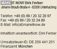 Der Autor erklärt hiermit ausdrücklich, dass zum Zeitpunkt der Linksetzung keine illegalen Inhalte auf den zu verlinkenden Seiten erkennbar waren. Auf die aktuelle und zukünftige Gestaltung, die Inhalte oder die Urheberschaft der verlinkten/verknüpften Seiten hat der Autor keinerlei Einfluss. Deshalb distanziert er sich hiermit ausdrücklich von allen Inhalten aller verlinkten /verknüpften Seiten, die nach der Linksetzung verändert wurden. Diese Feststellung gilt für alle innerhalb des eigenen Internetangebotes gesetzten Links und Verweise sowie für Fremdeinträge in vom Autor eingerichteten Gästebüchern, Diskussionsforen, Linkverzeichnissen, Mailinglisten und in allen anderen Formen von Datenbanken, auf deren Inhalt externe Schreibzugriffe möglich sind. Für illegale, fehlerhafte oder unvollständige Inhalte und insbesondere für Schäden, die aus der Nutzung oder Nichtnutzung solcherart dargebotener Informationen entstehen, haftet allein der Anbieter der Seite, auf welche verwiesen wurde, nicht derjenige, der über Links auf die jeweilige Veröffentlichung lediglich verweist.